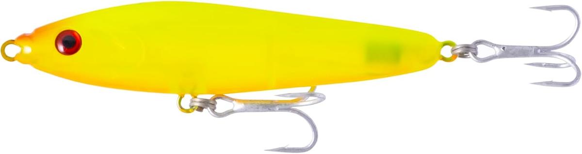 Você dá toques curtos com a vara e a isca ziguezagueia na superfície. O peso de 8g e a distribuição interna fazem ela virar bem de um lado para o outro. Precisa de prática para pegar o jeito, mas quando aprende, é muito eficaz para bass e tucunaré.