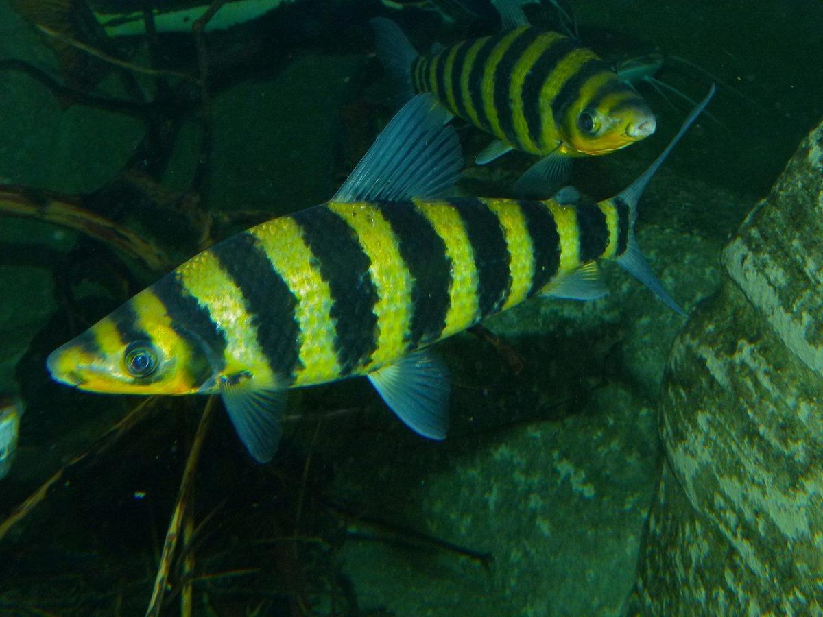 O aracu-pinima (leporinus fasciatus), também conhecido como piau-listrado ou banded leporinus, é uma espécie característica da bacia Amazônica e seus afluentes. Membro da família Anostomidae, este peixe é facilmente reconhecido por suas 8 a 10 faixas verticais escuras que atravessam o corpo prateado, criando um padrão distintivo que lembra códigos de barras. Com tamanho médio de 20 a 30 centímetros, o aracu-pinima habita rios de água clara e preta, alimentando-se principalmente de material vegetal, frutos e sementes. Embora não atinja o porte de seu parente piauçu, esta espécie oferece excelente esporte em equipamento leve e é muito apreciada na culinária regional da Amazônia. Sua carne branca e firme, quando preparada assada ou moqueada, é considerada uma iguaria.