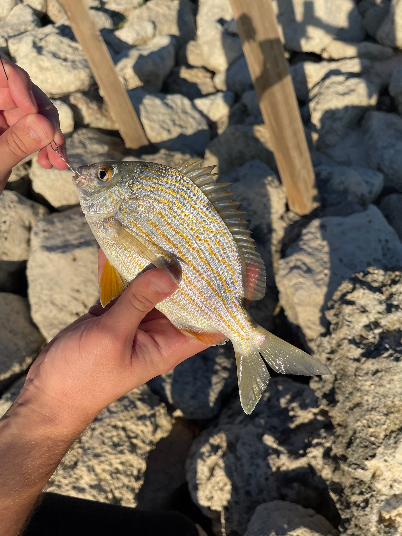 Lagoas e canais têm sargo-de-beiço ativo de 0.5-1.5kg em estruturas rasas. Pesca urbana técnica.