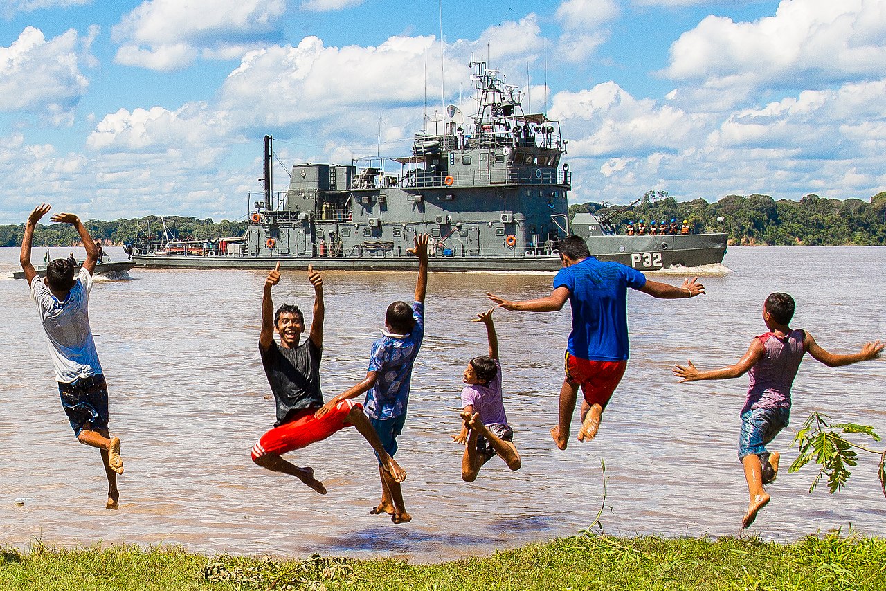 Comunidade ribeirinha Ariá às margens do Rio Solimões. Foto: Marinha do Brasil / Wikimedia Commons (CC BY-SA 2.0).