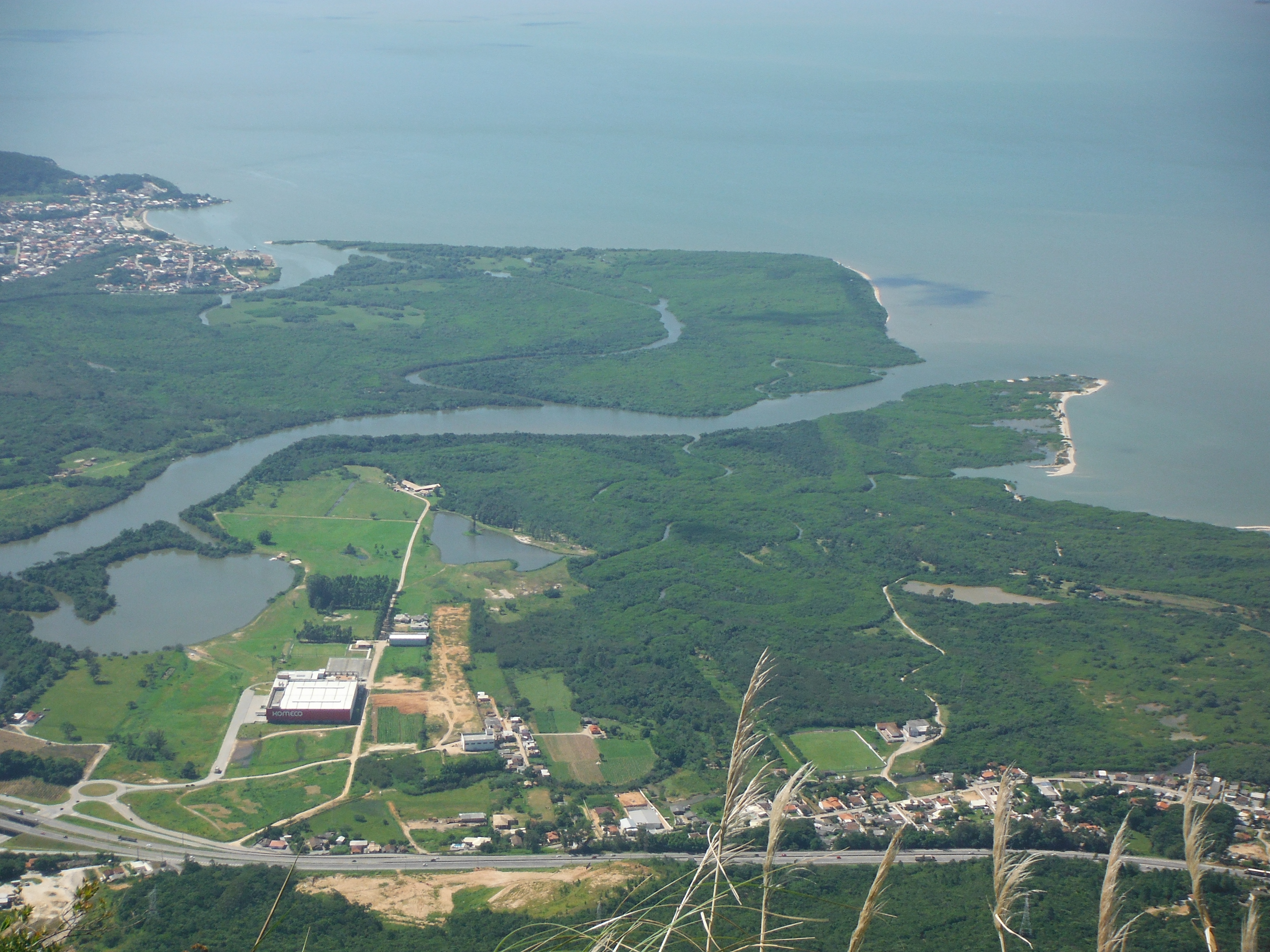 Foz do Rio Cubatão do Sul na planície de Palhoça. Foto: André Ganzarolli Martins/Wikimedia Commons.
