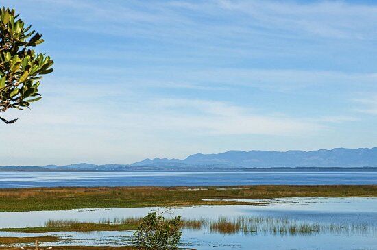 Lagoa costeira rasa com canais de ligação e margens de vegetação. Tainha e corvina entram forte no outono/inverno; linguado usa as bordas arenosas; robalos menores aparecem nos canais. Ventos fortes levantam onda curta, exigindo atenção em caiaque.